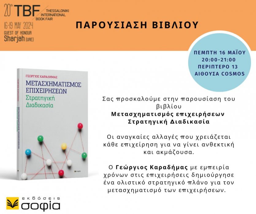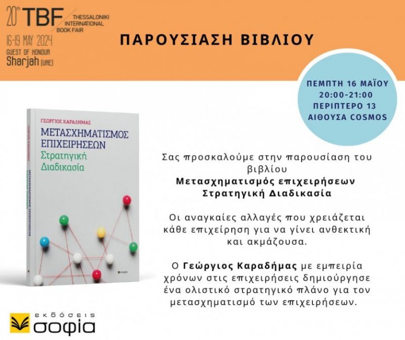 20η ΔΕΒΘ: Παρουσίαση βιβλίου: ΜΕΤΑΣΧΗΜΑΤΙΣΜΟΣ ΕΠΙΧΕΙΡΗΣΕΩΝ Στρατηγική Διαδικασία